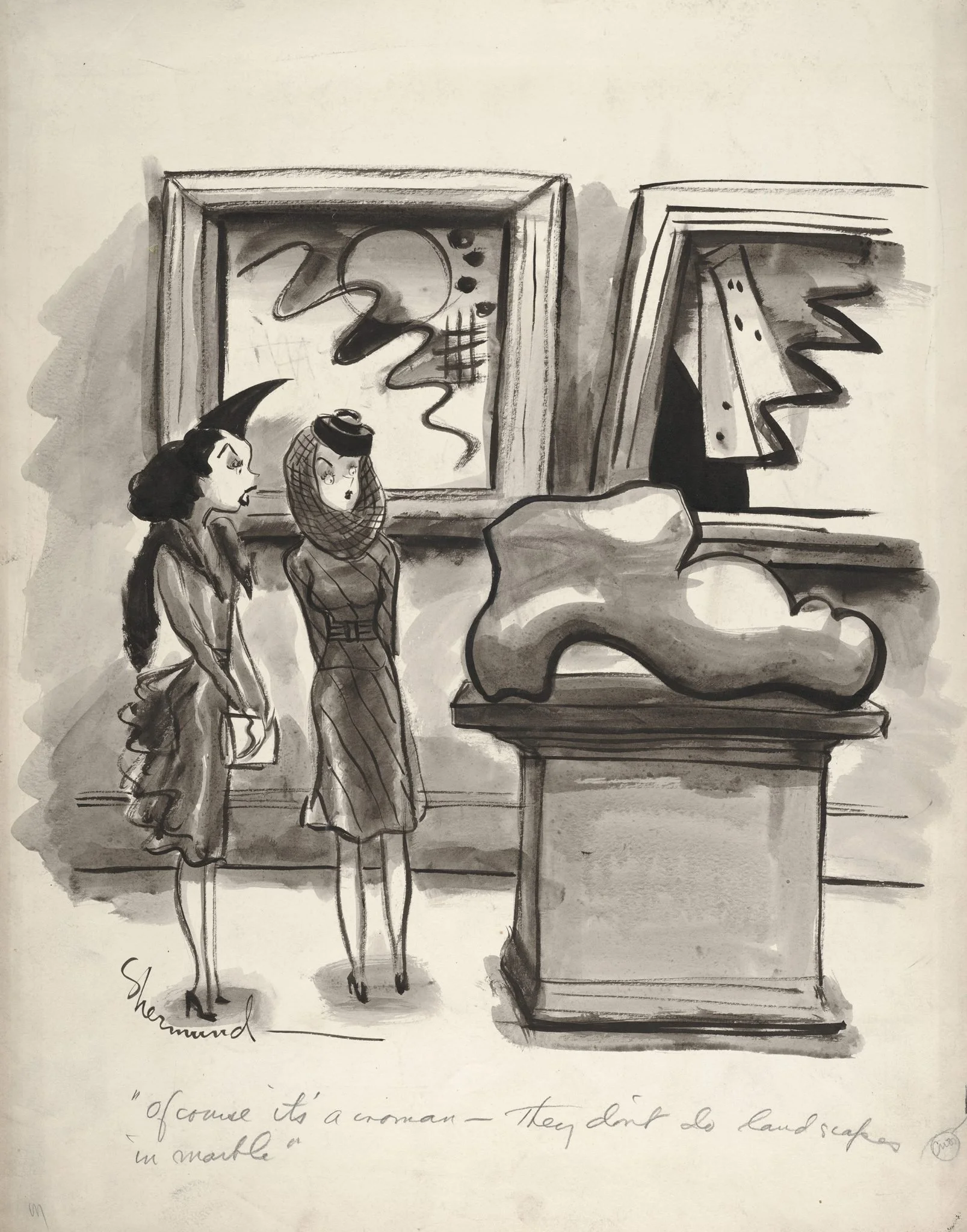 Although her career was well-lived, it isn’t well documented. Shermund played an essential role in The New Yorker’s illustrative legacy while leaving behind her own legacy as a feminist artist. Her sharp wit and subversive commentary often feel strikingly relevant and contemporary. Though her name may not be widely known today, her influence on the tone and style of American cartooning endures.
